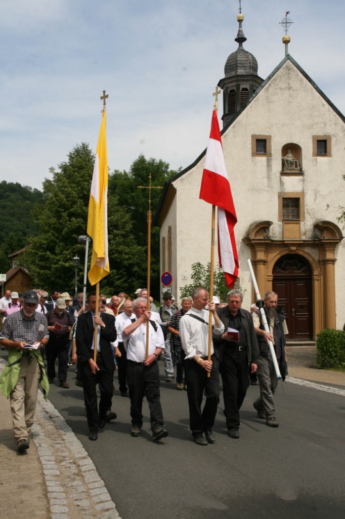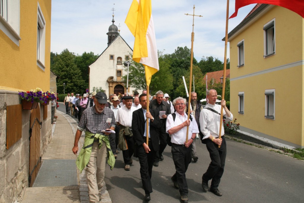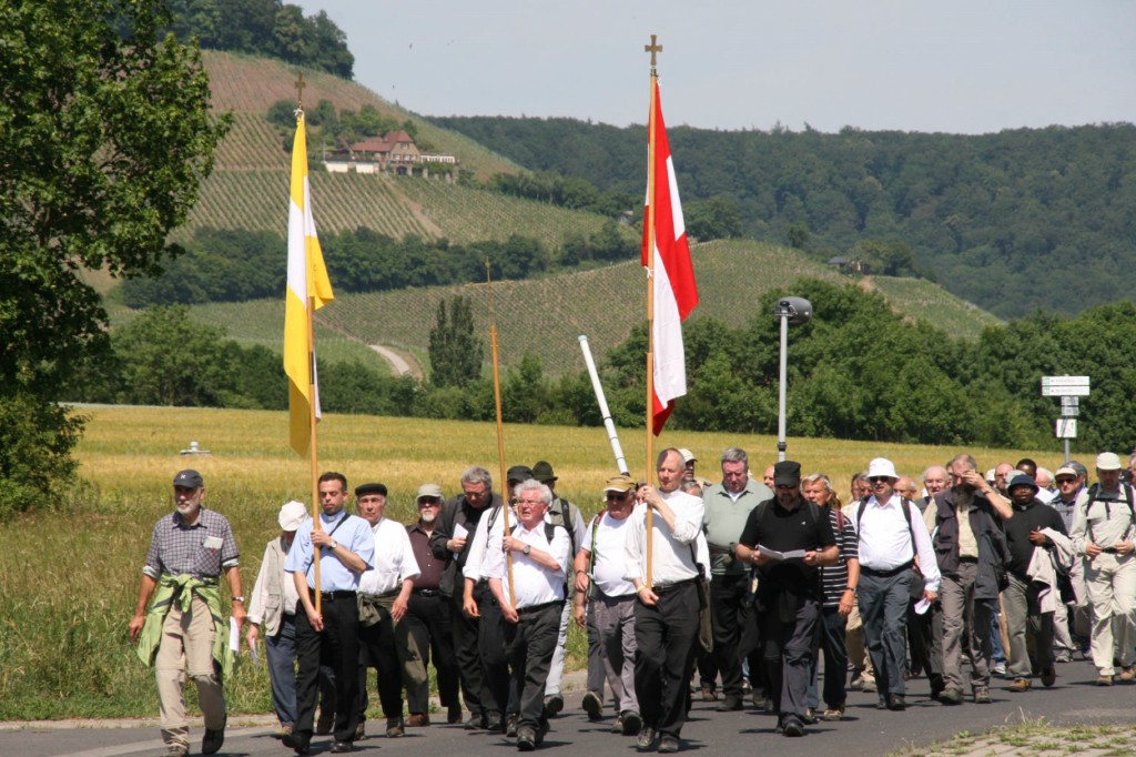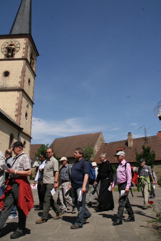 Würzburg/Ebrach/Oberschwarzach (POW) Auf den Spuren des neuen Seligen Georg Häfner sind rund 70 Priester und Diakone der Diözese Würzburg am Freitag, 3. Juni, von Ebrach nach Oberschwarzach gewallt. Beim Gottesdienst in Handthal unterstrich Generalvikar Dr. Karl Hillenbrand die Geradlinigkeit, profilierte Spiritualität und enge Verbundenheit des damaligen Oberschwarzacher Pfarrers mit seiner Gemeinde. Weihbischof Boom betonte bei der abschließenden Vesper in der Pfarrkirche Oberschwarzach, nicht die Kirche sei das Erste, sondern Gott und der Mensch.