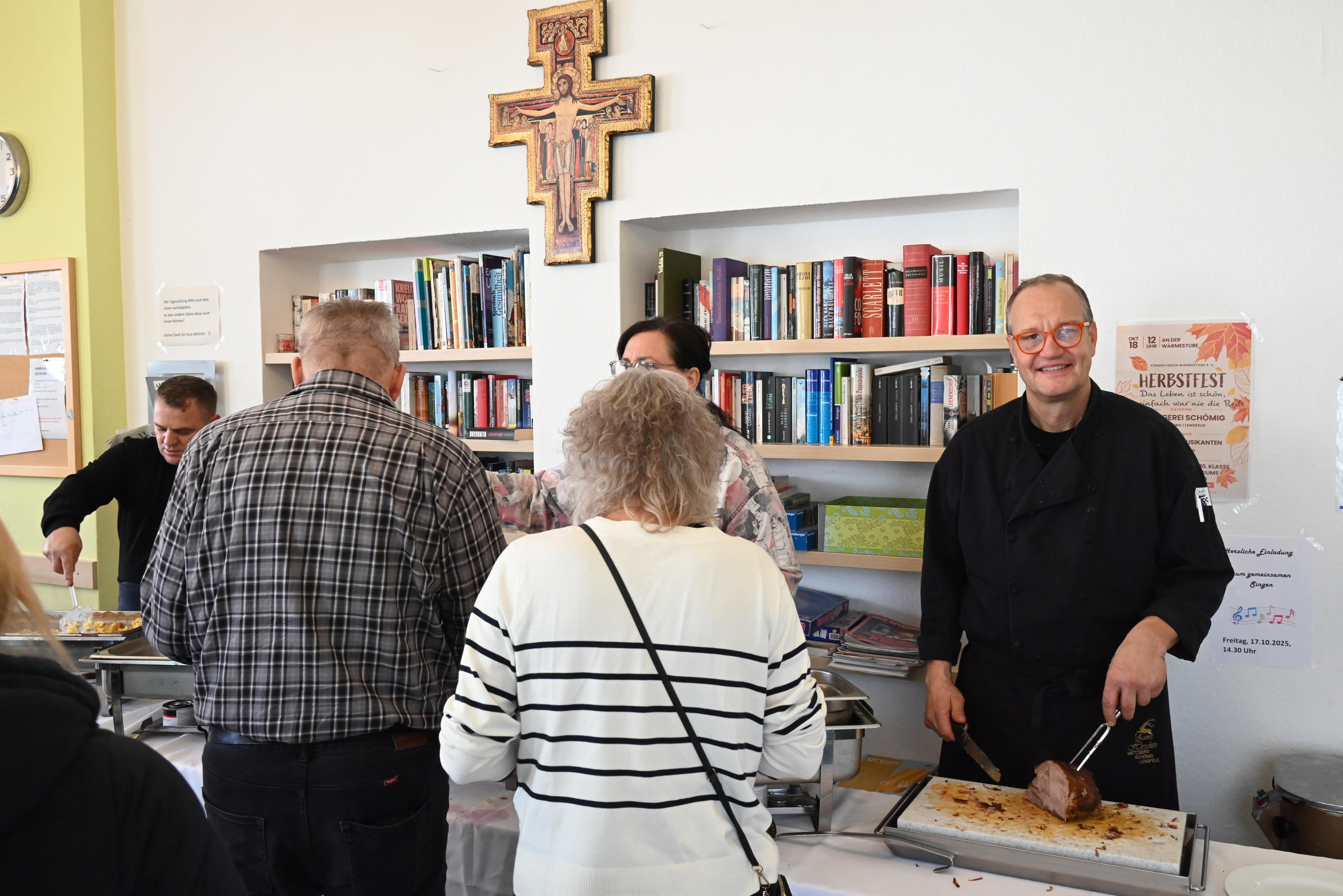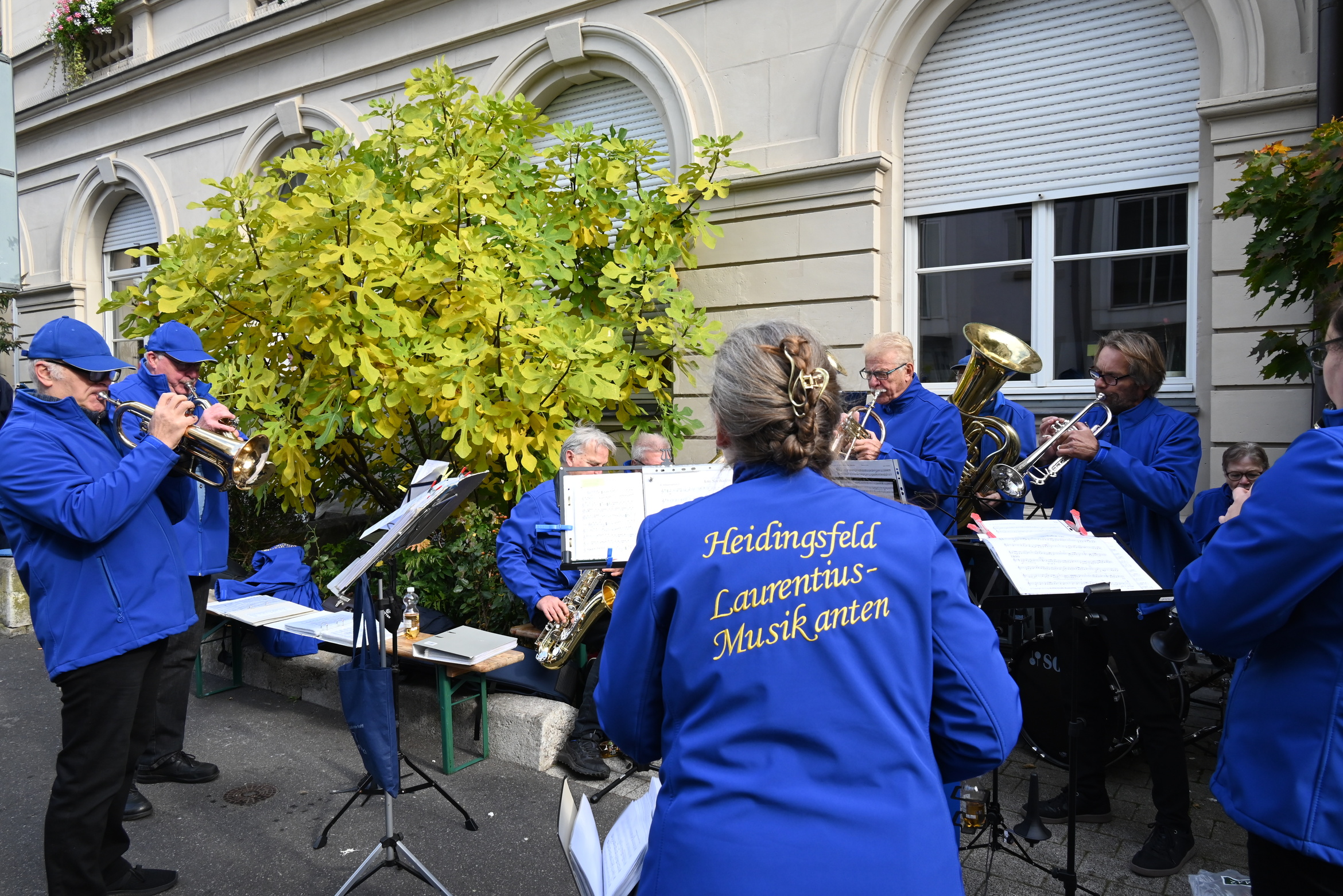 Vorsitzender Lehrieder nutzte seine kurze Ansprache an die vielen Gäste der Wärmestube, um der ökumenischen Christophorus-Gesellschaft und namentlich ihrer Geschäftsführerin Nadia Fiedler zu danken, in deren Trägerschaft die Wärmestube hinterm Theater liege. Ein großer Dank ging erneut an Claudia und Rainer Schömig. Die Lengfelder Wirtsleute hatten mit Spießbraten, Klößen, Hähnchenschenkeln und Käsespätzle für den wichtigen kulinarischen Teil des Festes gesorgt. Für die gute Blasmusik ging der Dank erneut an die Laurentiusmusikanten aus Heidingsfeld. Seit Jahren begleitet die Gruppe unter Leitung von Michael Heßdörfer das Herbstfest und andere Anlässe an der Wärmestube.