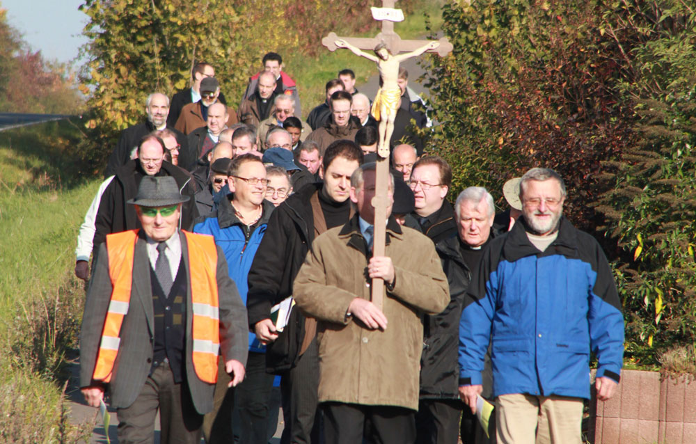 Zu Beginn des Priestertags waren die Seelsorger von den Gotteshäusern in den Orten Wiebelsberg, Bimbach und Breitbach zu Fuß mit Bischof Hofmann und Generalvikar Dr. Karl Hillenbrand nach Oberschwarzach gezogen. Eine Anbetung mit eucharistischem Segen beschloss das Treffen der Priester und Diakone.