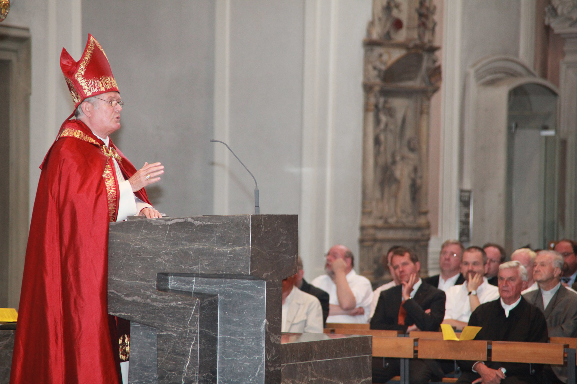 Mit Blick auf das aktuelle Priesterjahr erinnerte Bischof Hofmann an das Vorbild des heiligen Pfarrers von Ars. Das Priesterjahr sei keine Bevorzugung einer Gruppe von Glaubenszeugen der Kirche, sondern das Bewusstmachen, welche grundlegende Bedeutung das Priestertum für die Kirche habe. Die Zusammenarbeit der Priester mit allen haupt- und ehrenamtlichen Laien sei ein Gebot der Stunde. Die Priester bildeten mit dem priesterlichen Volk eine Einheit und würden im Römerbrief des Apostels Paulus aufgefordert, alle zur Einheit in der Liebe zu führen, indem sie in Bruderliebe einander herzlich zugetan sind, in Ehrerbietung einander übertreffen. Auch das Zweite Vatikanische Konzil fordere die Priester auf, den übergroßen Schatz der Laien für die Sendung der Kirche zu erkennen und zu fördern, um gemeinsam die Zeichen der Zeit wahrzunehmen und angemessen darauf reagieren zu können.