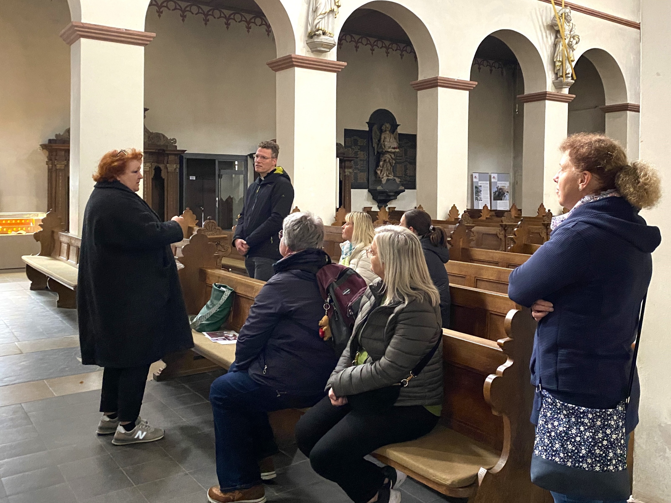Erster Anlaufpunkt war die Basilika, in der die Märtyrer Marcelinus und Petrus verehrt werden. Einhard, ein Schreiber Karls des Großen, gründete hier vor 1200 Jahren ein Kloster. Die Basilika und Stadt wurden bei einer unterhaltsamen und informativen Führung erläutert.